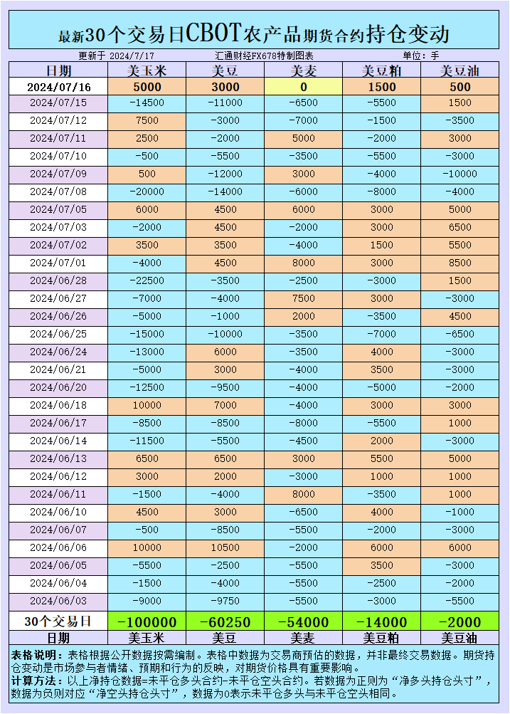汇通财经APP讯——CBOT持仓变动显著,大宗商品基金在7月16日增持了玉米、大豆、豆粕和豆油的净多头头寸,而小麦市场则显示出未平仓多头与空头的平衡。本文将深入分析大豆、豆粕、豆油、小麦和玉米市场的最新动态,为投资者提供全面的市场视角和具体报价。