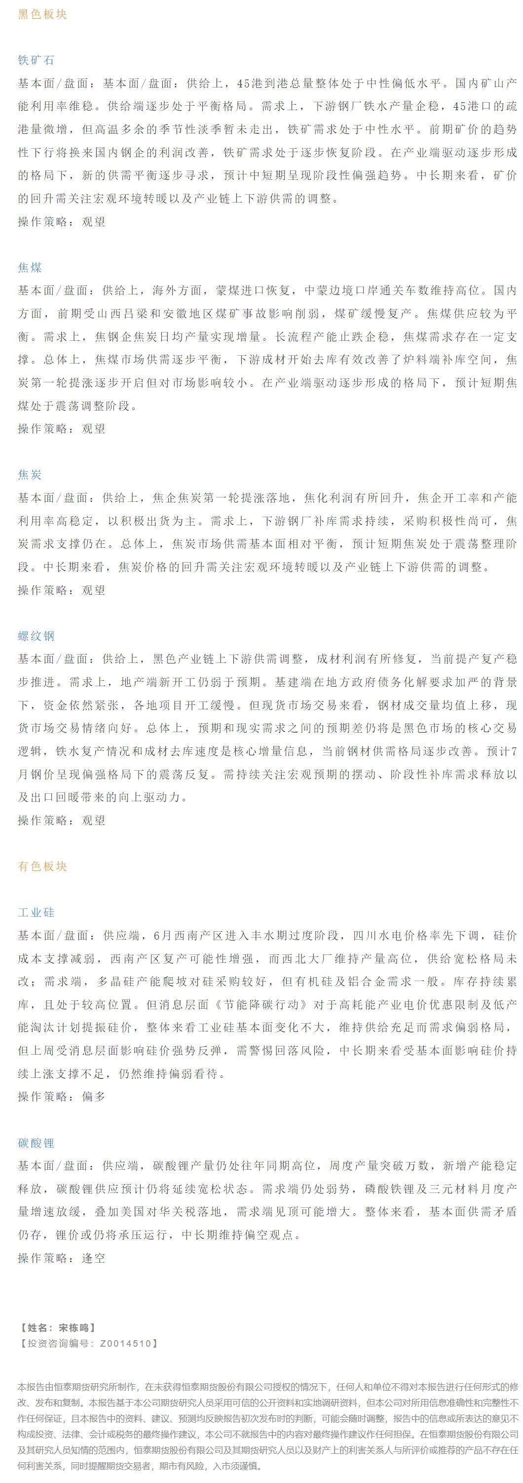 标题:【恒泰早报】7月19日恒泰期货交易策略