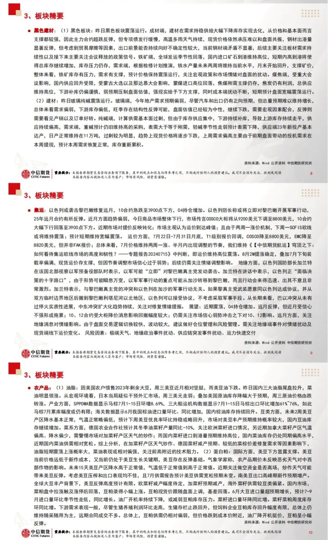 中信期货7月19日晨报:会议公报释放重要信号,商品夜盘开盘多数下跌