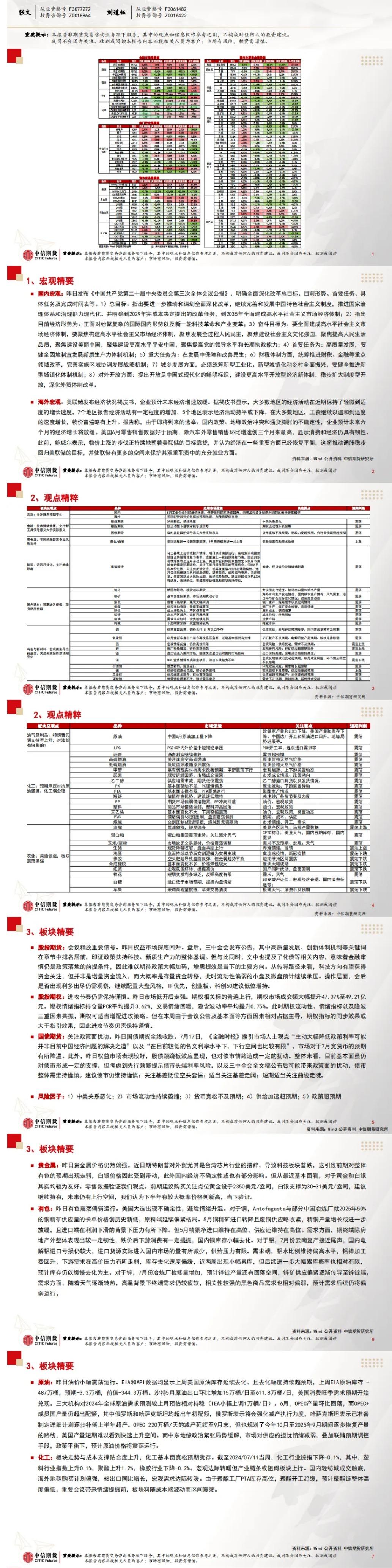 标题:中信期货7月19日晨报:会议公报释放重要信号,商品夜盘开盘多数下跌