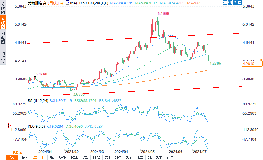铜技术分析:在负面催化剂的影响下,铜价继续下跌