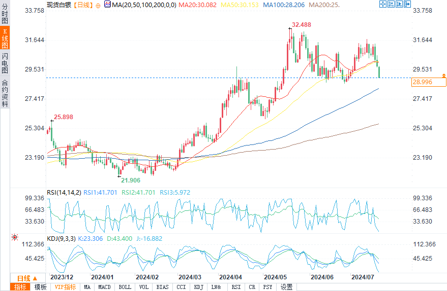 标题:白银价格跌破50日移动均线,出现看跌信号