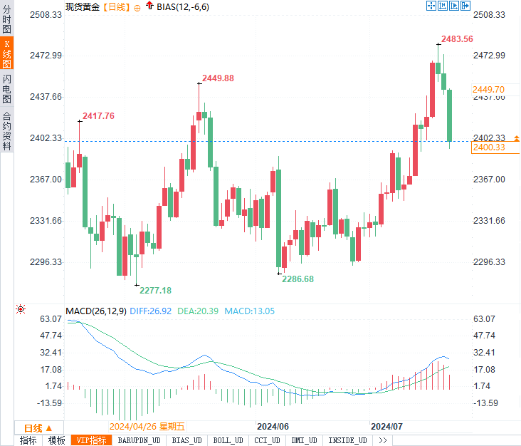 7月17日,金价曾涨至2,483.73美元,创历史新高,这可能成为未来的阻力位。