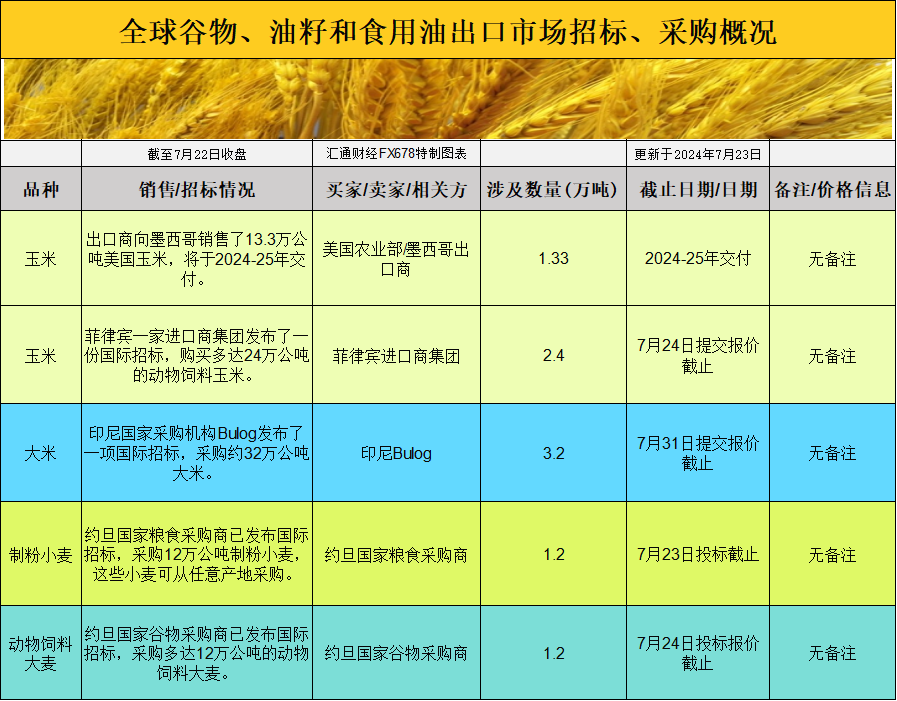 小麦市场的最新动态主要体现在国际招标活动中。约旦国家粮食采购商发布的国际招标,采购12万公吨制粉小麦,这些小麦可从任意产地采购,投标截止日期为7月23日。