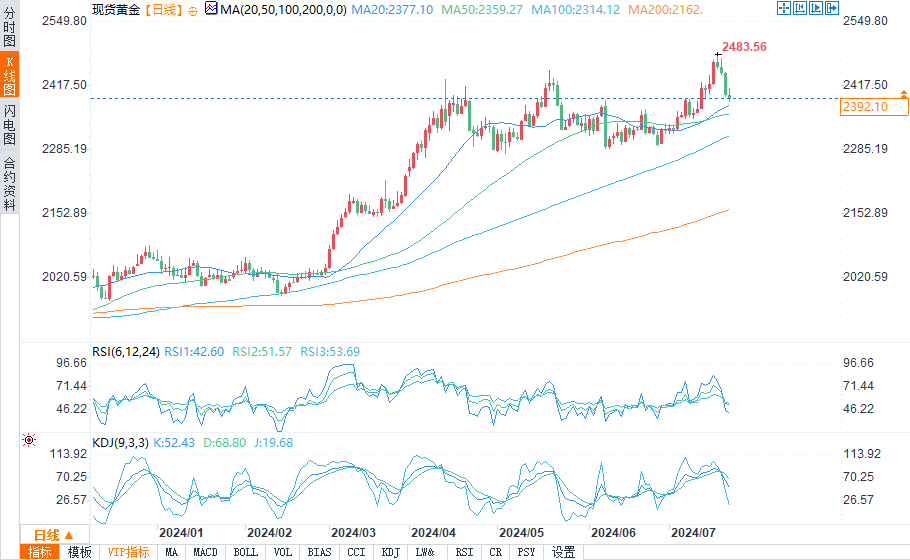 在外部市场负面的情况下,黄金的抛售压力不大