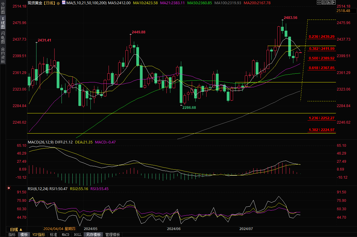 在此之后,金价的目标将瞄准2500美元/盎司整数关口。