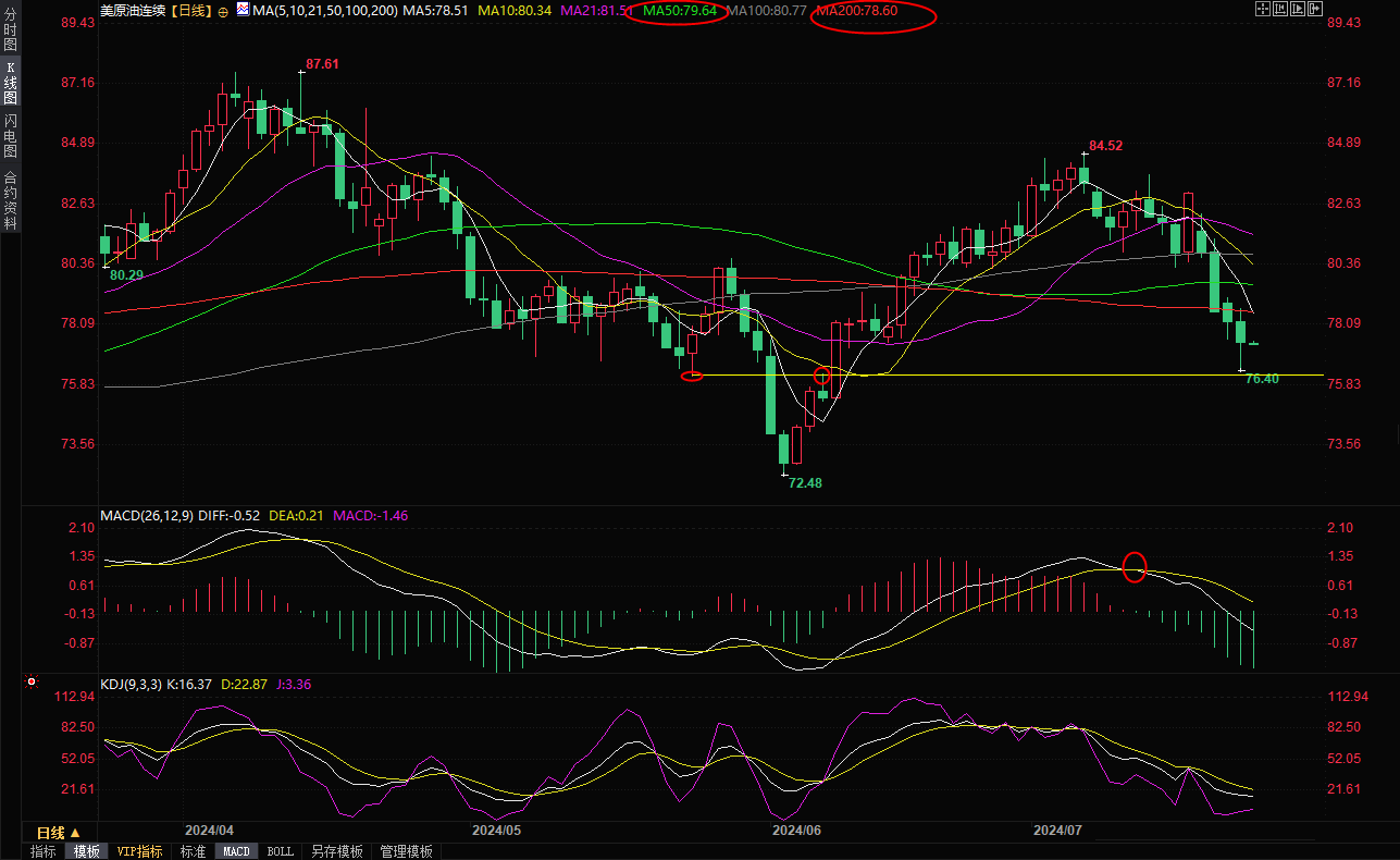 美原油主力合约日线图,来源:易汇通)