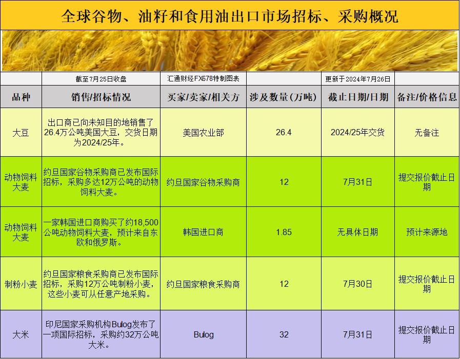 汇通财经APP讯——大豆市场受到农民抛售行为的影响,现货报价出现波动,但出口销售数据依然强劲,显示出国际市场对美国大豆的持续需求。豆粕市场则因压榨能力的提升和新作订单的强劲表现而保持稳定。玉米市场在现货价格波动中展现出出口销量的强劲,而小麦市场则在基差报价稳定的同时,蛋白质溢价出现走弱。