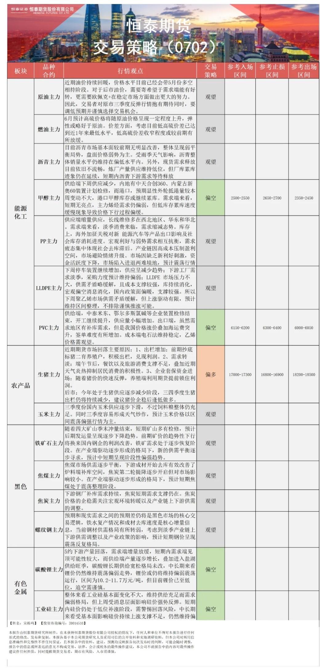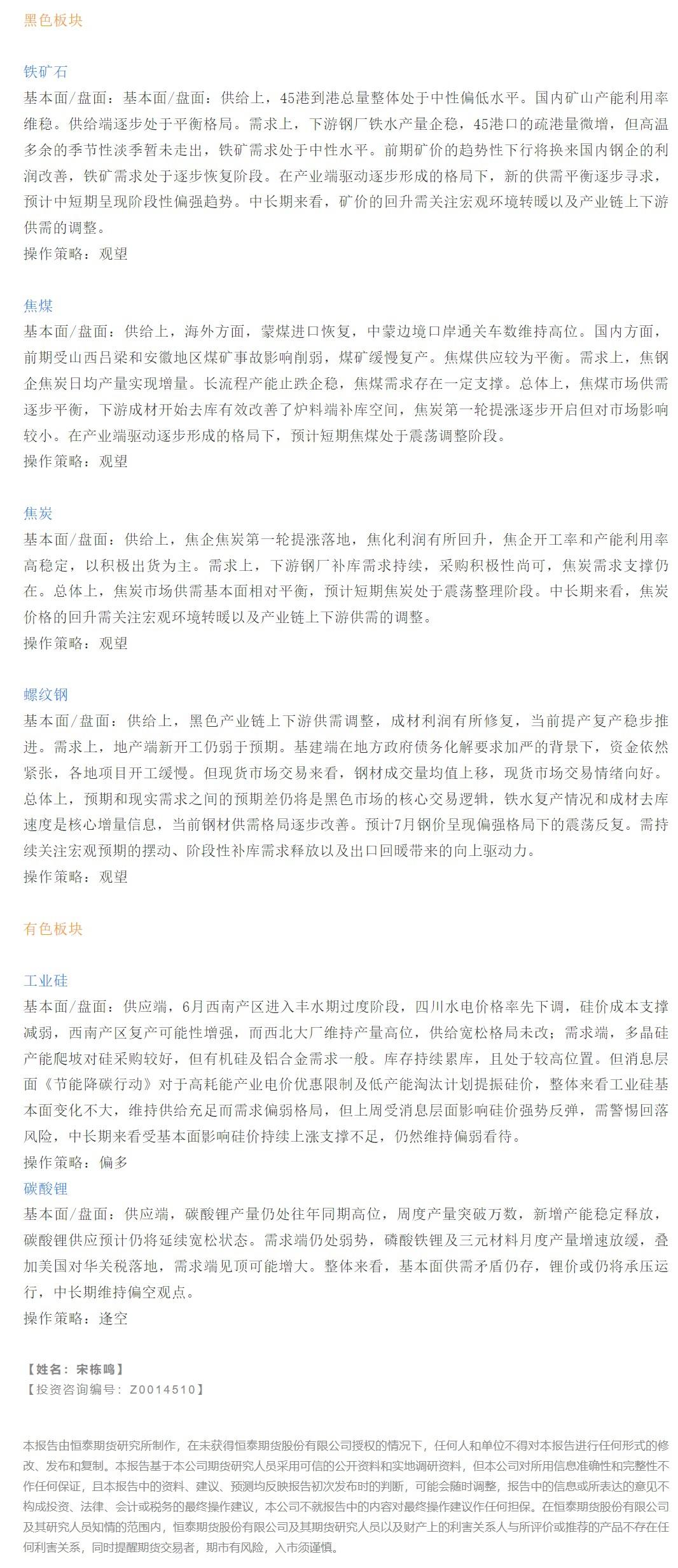 标题:【恒泰早报】7月26日恒泰期货交易策略