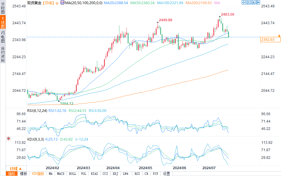 现货黄金报2357.94美元/盎司,跌幅1.63%。