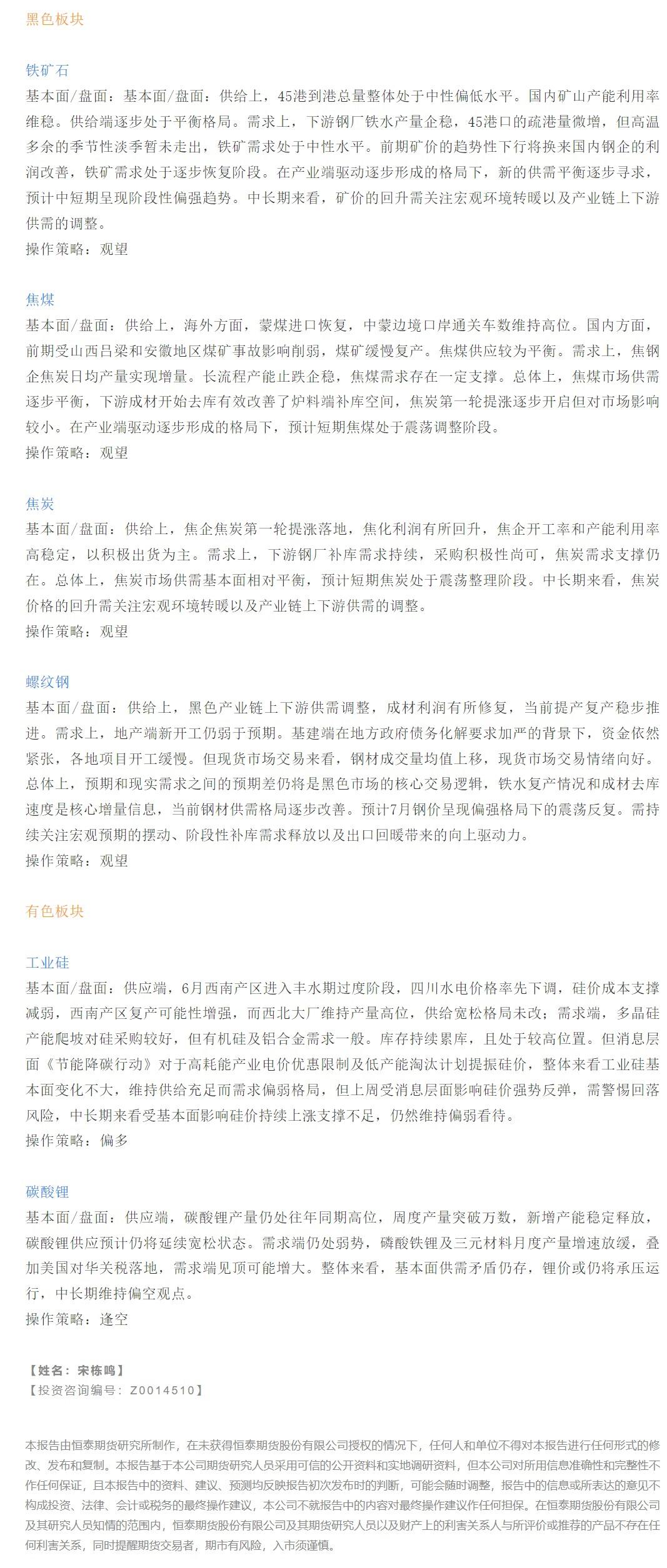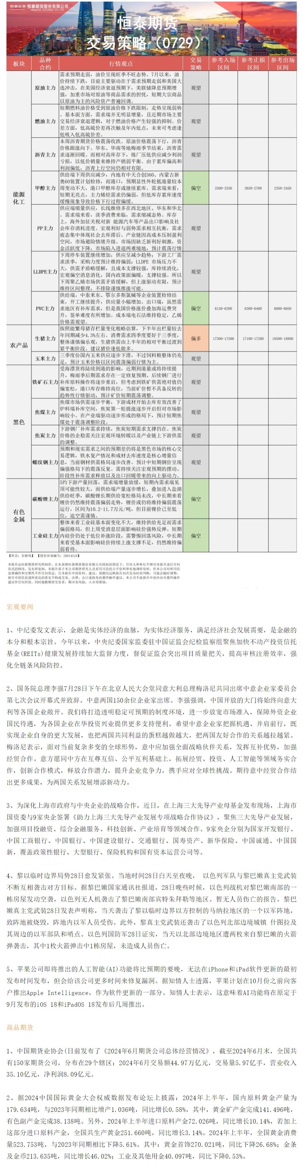 标题:【恒泰早报】7月29日恒泰期货交易策略