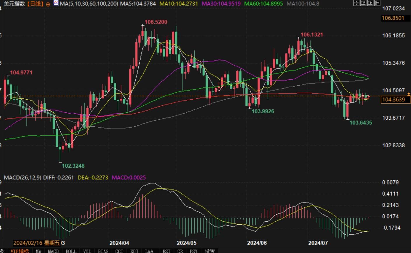 美元指数报104.36