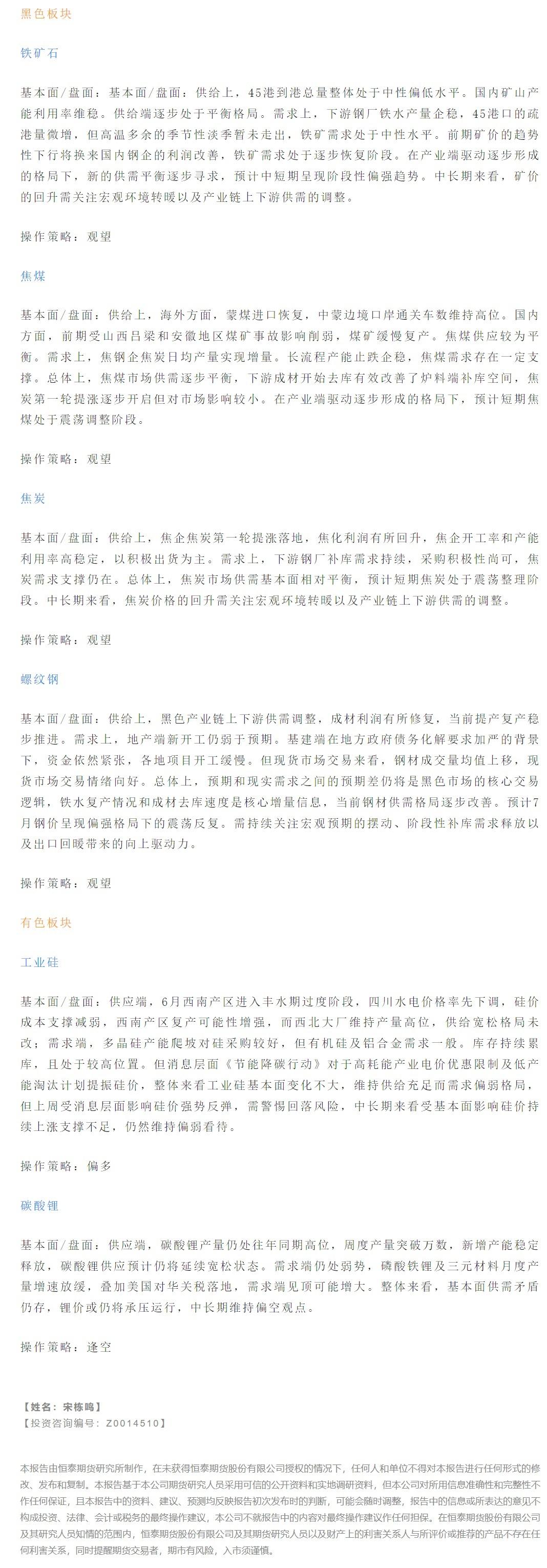 标题:【恒泰早报】7月31日恒泰期货交易策略