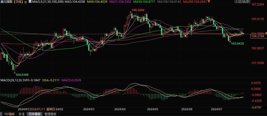 美元指数报104.39