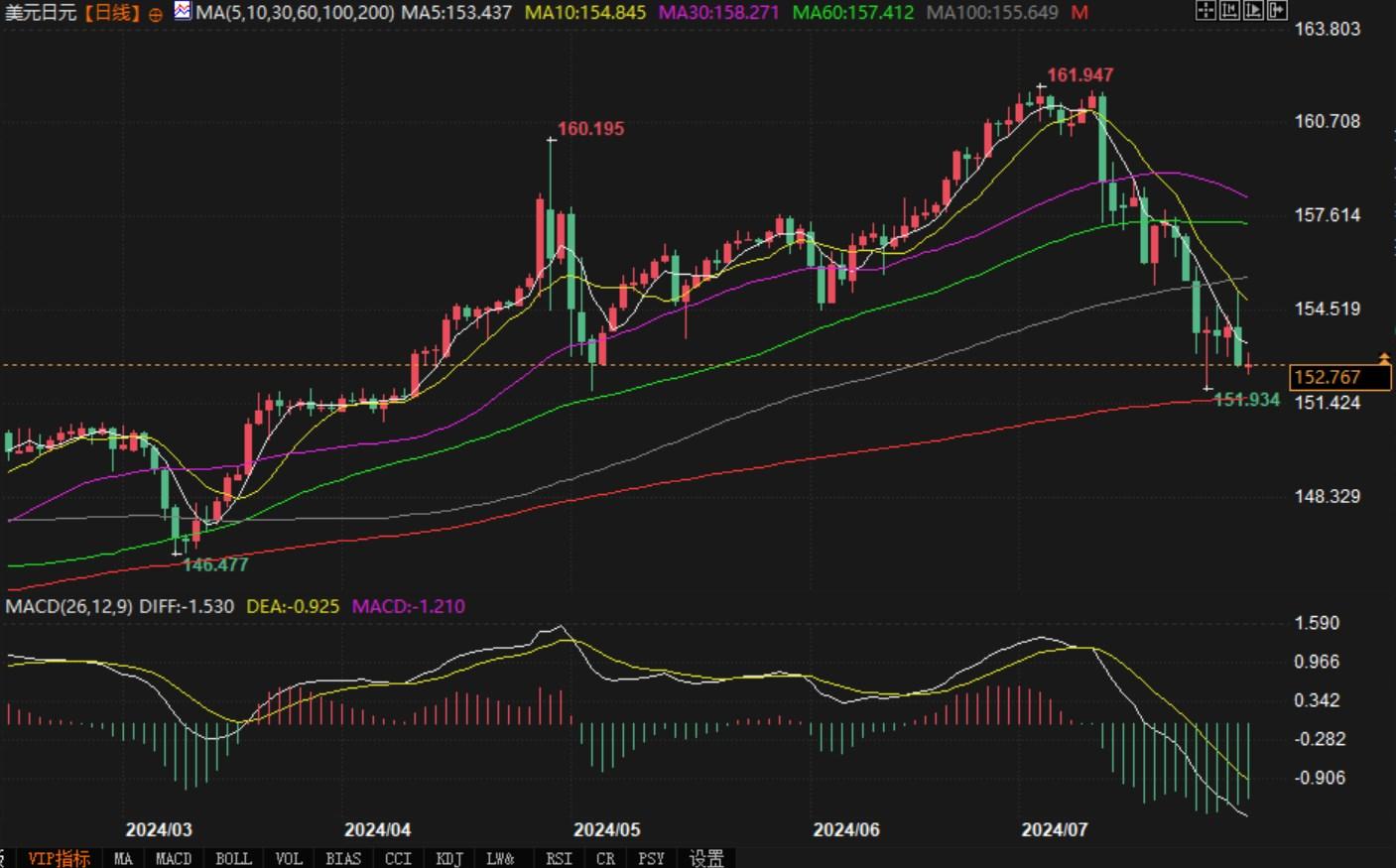 美元兑日元日线图