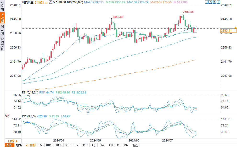标题:现货金持稳于每盎司2390美元附近,因美国7月消费者信心改善