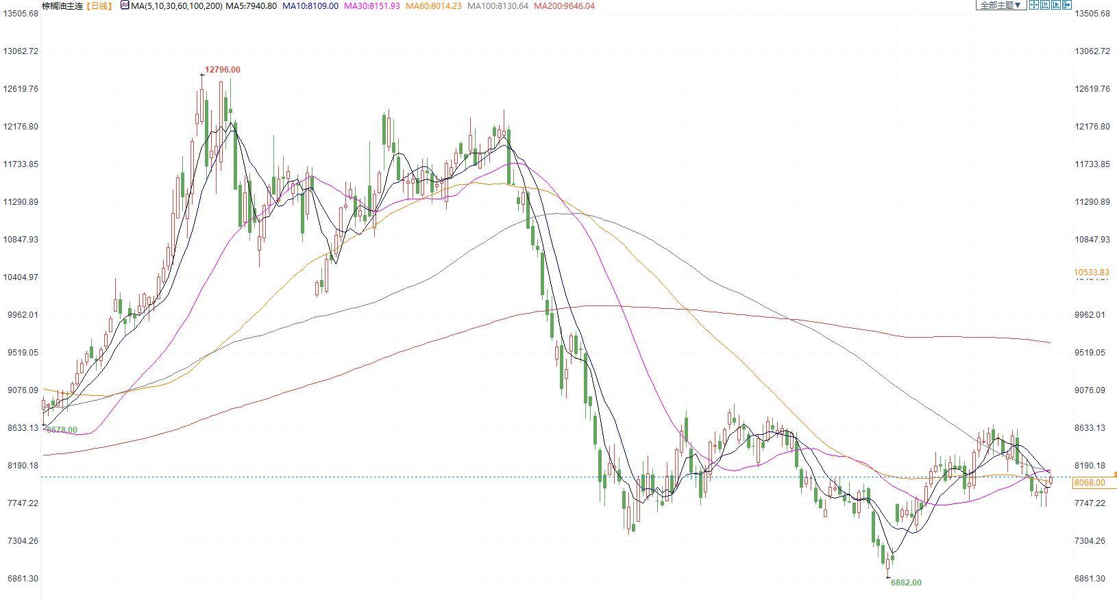 棕榈油2301合约日内涨2.13%,收盘8068元/吨;广州市场棕榈油8210元/吨。