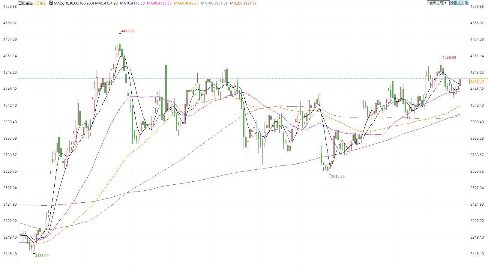 豆粕2301合约日内涨1.06%,收盘价4212元/吨,现货张家港43%蛋白豆粕5100元/吨
