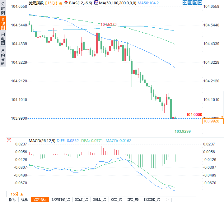 美元指数DXY应声下跌,失守104关口,日内跌幅达到0.46%。在外汇市场上,