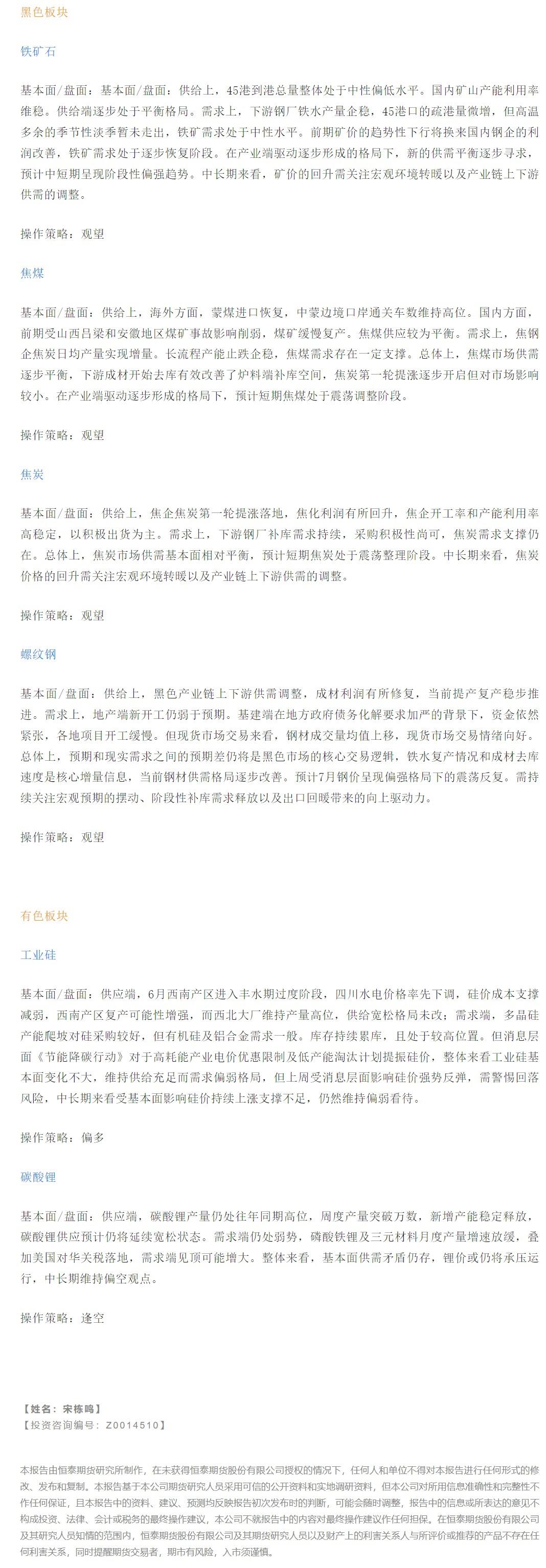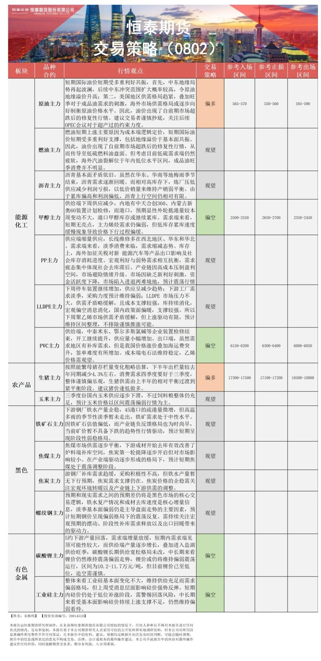 标题:【恒泰早报】8月2日恒泰期货交易策略