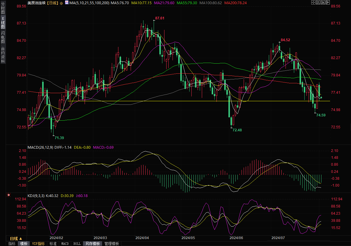 美原油目前交投于76.68美元/桶附近。油价周四收低逾1美元,哈马斯领导人在伊朗遇害后对出现更广泛中东危机的担忧似乎并未影响全球供应,而且投资者重新关注需求问题。美国的多个经济数据表现不佳,令油价承压明显,尤其是制造业数据。