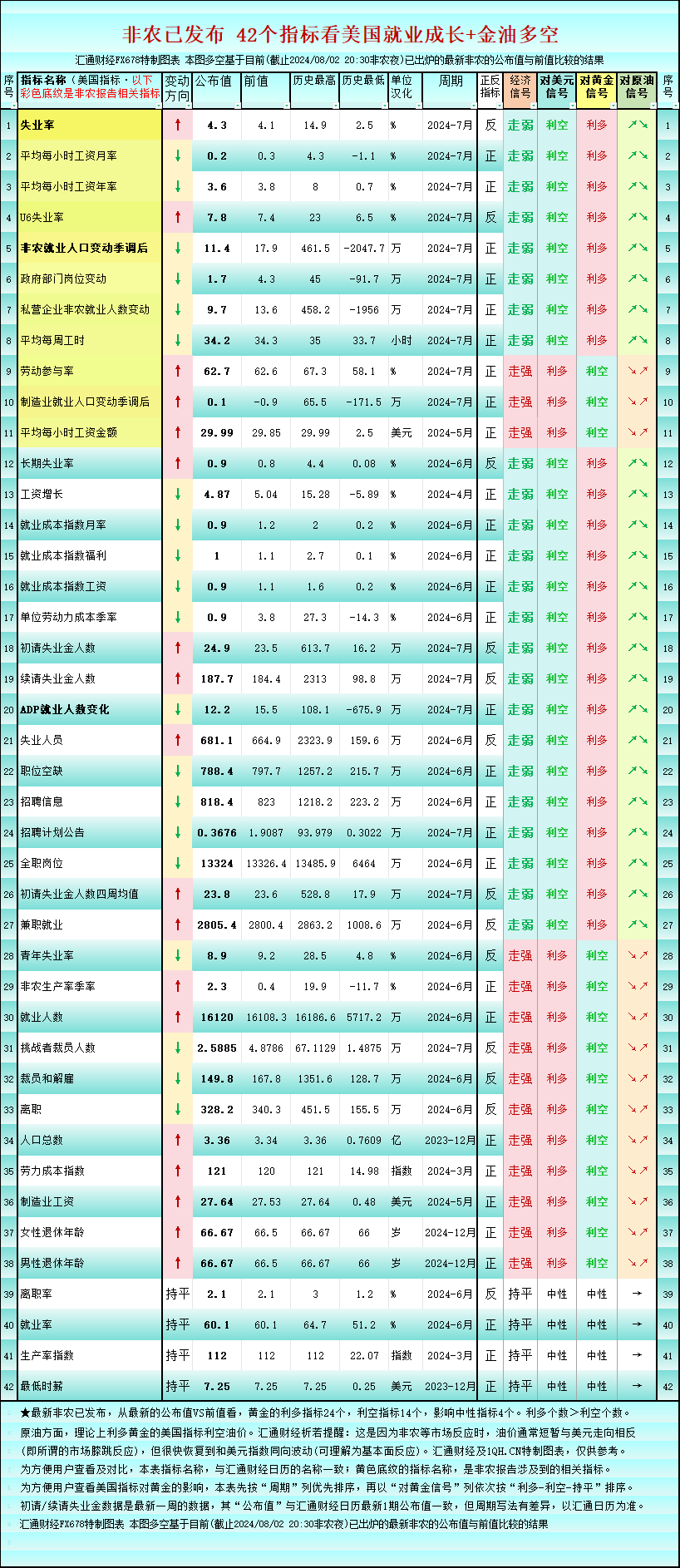 标题:一张图看42个美国就业指标,非农后利多黄金的指标增加至24个