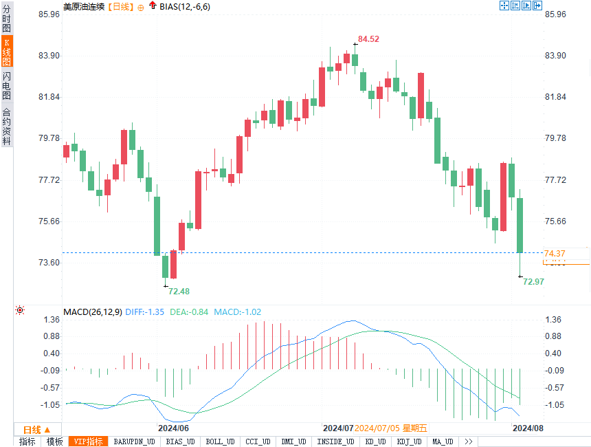 WTI 9月原油期货周五收跌2.79美元/桶,跌幅接近3.66%,报73.52美元/桶。