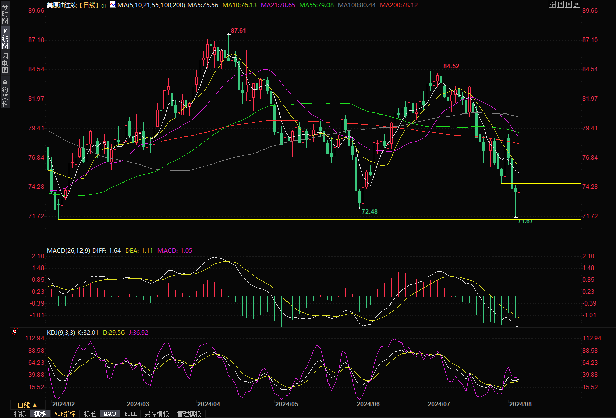 美原油目前交投于73.90美元/桶附近。油价周一震荡下跌,全球股市抛售继续,但油市跌幅受限,因市场担忧伊朗可能对一名哈马斯领导人在德黑兰遇刺进行报复,从而导致中东爆发更广泛的战争。
