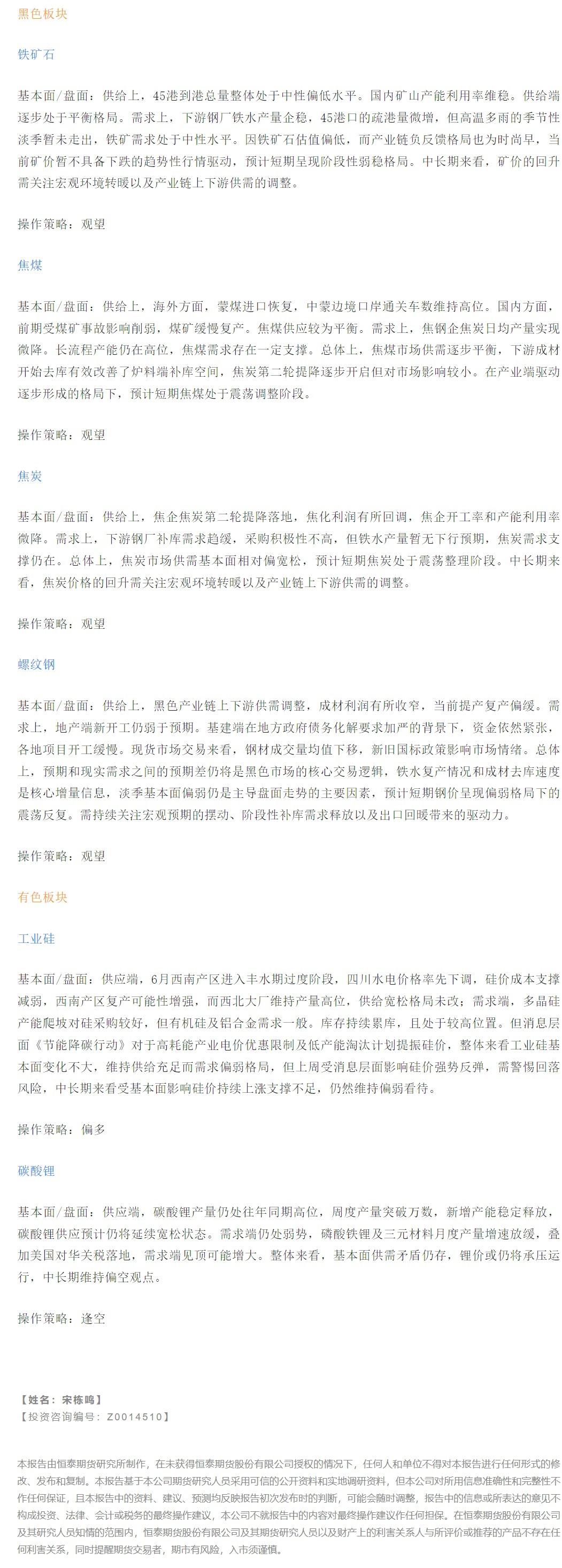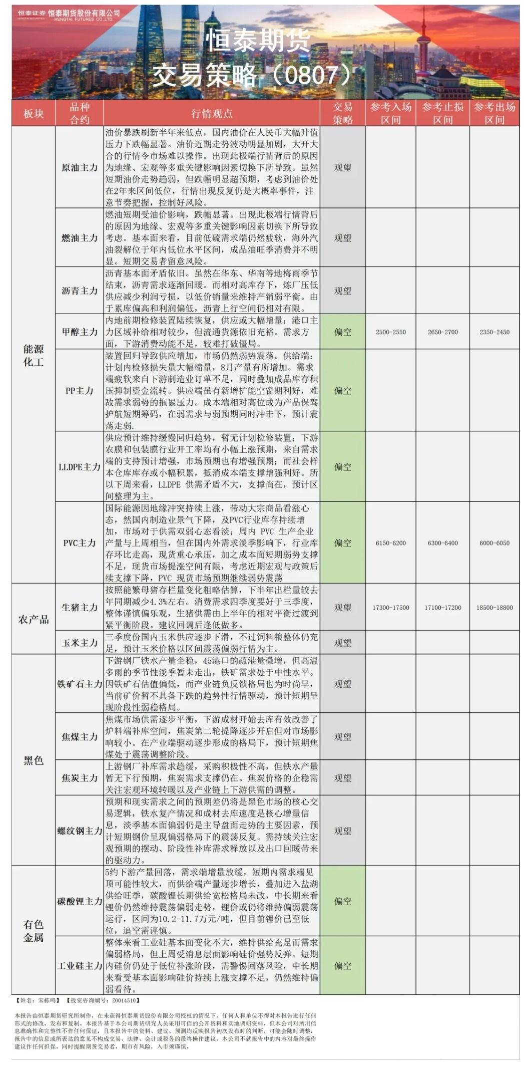 标题:【恒泰早报】8月7日恒泰期货交易策略