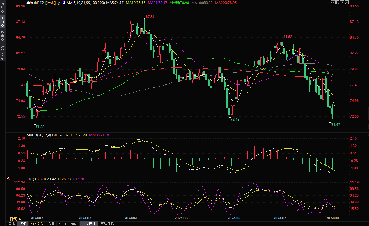 短线仍没有出现见底信号,需要提防油价的进一步下探风险;由于已经守住了近半年低点71.39附近支撑,仍需留意震荡筑底的可能性。