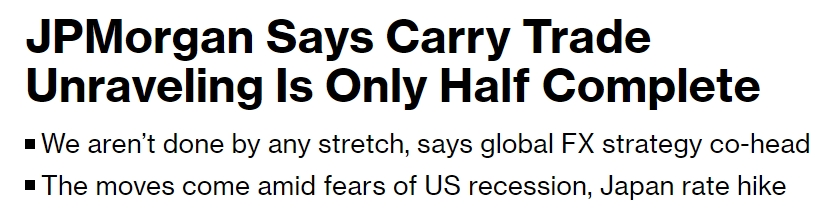 标题:摩根大通发出警告,日元套利平仓仅完成一般,提防“黑色星期一”行情延续