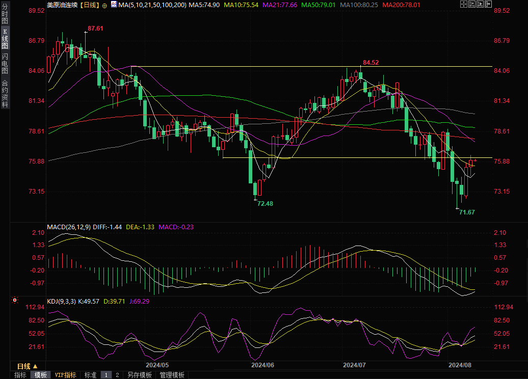 美原油目前交投于76.15美元/桶,暂时守住了个大部分涨幅。油价周四延续涨势,为连续第二个交易日收高,此前美国就业数据缓解了需求担忧,中东战争也帮助油价从周一触及的八个月低位回升。