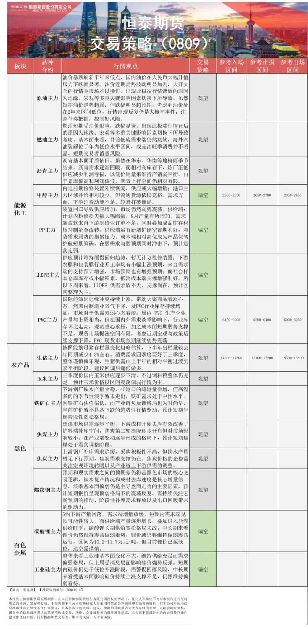 标题:【恒泰早报】8月9日恒泰期货交易策略