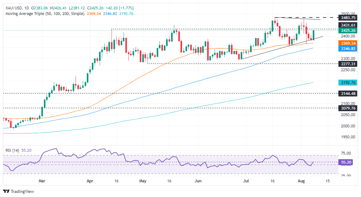 FXStreet分析师Christian Borjon Valencia指出,现货黄金大幅反弹,突破2424美元/盎司的高点,买家关注2450美元/盎司心理关口。相对强弱指数(RSI)显示,买家正在积聚动力,这意味着价格可能进一步走高。