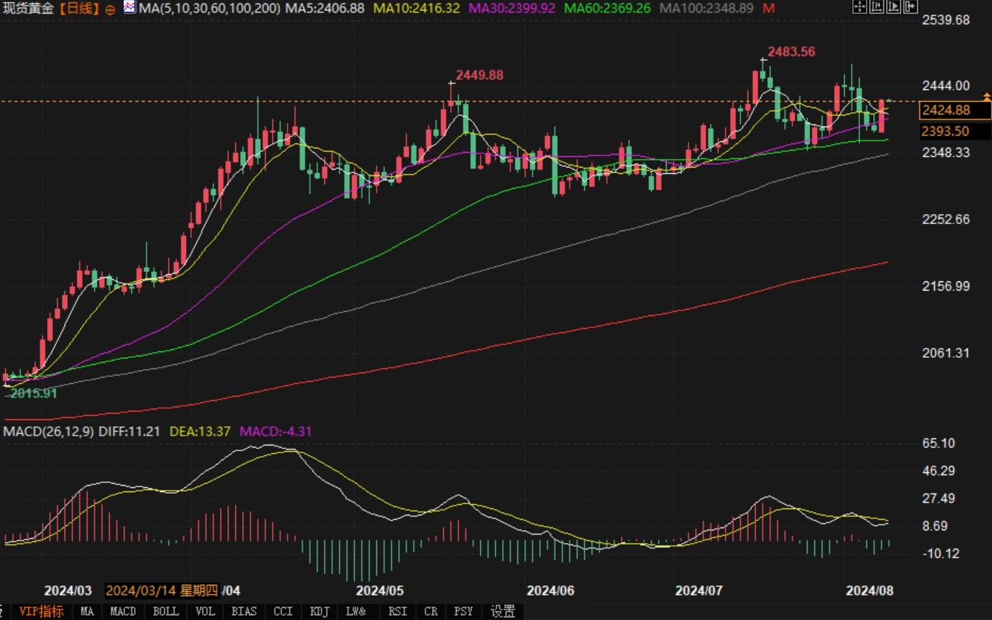 黄金短期技术面看涨,阻力位在2475美元和2500美元!
