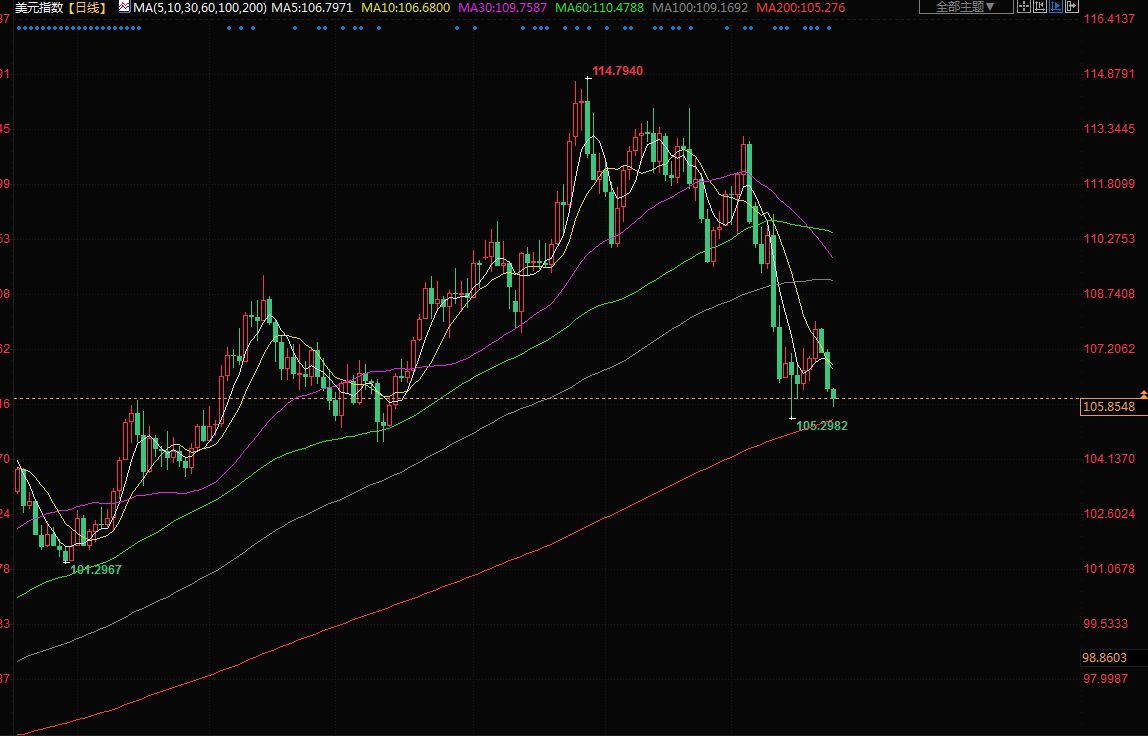美元指数交投于105.85附近;美元周四扩大跌幅,此前公布的美联储11月会议记录支持了将从12月会议开始放缓加息幅度的观点,金价升至近一周高位;