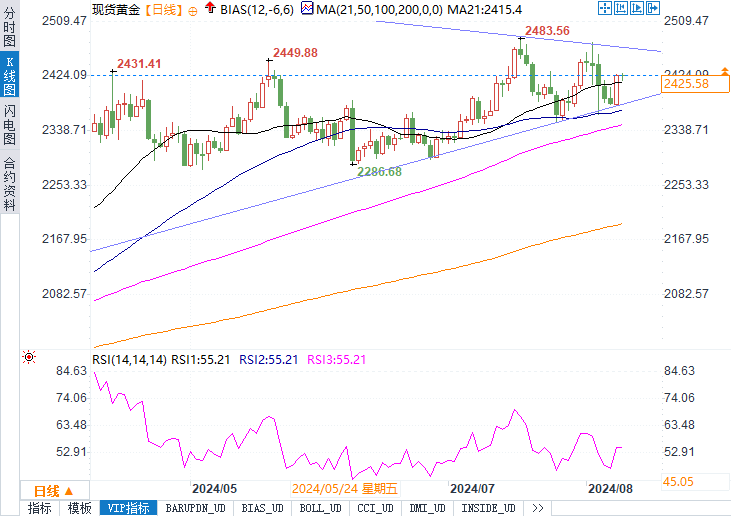 黄金作为传统的避险资产,在当前全球经济不确定性的背景下,其基本面支撑依然稳固。尽管近期全球股市的波动性有所增加,但黄金的避险属性并未受到明显影响。此外,全球央行的宽松货币政策也为黄金价格提供了一定的支撑。