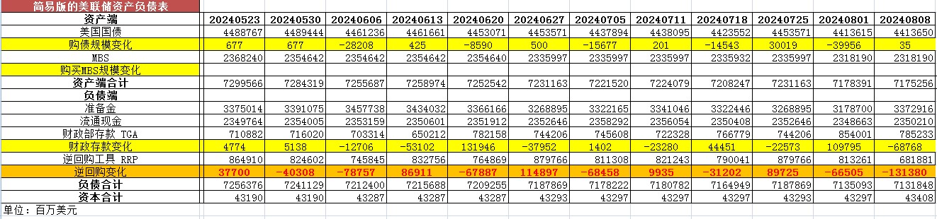 2024年8月8日,美联储照例公布了当周的资产负债表。