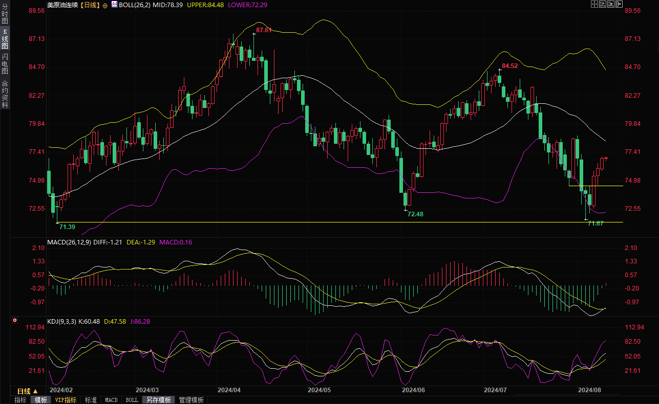 美原油目前交投于76.83美元/桶附近。上周五油价收高至一周高位,周线涨幅超过3.5%,积极的经济数据和美联储决策者可能最早于9月降息的信号缓解了需求担忧,而对中东冲突扩大的忧虑继续增加供应风险。
