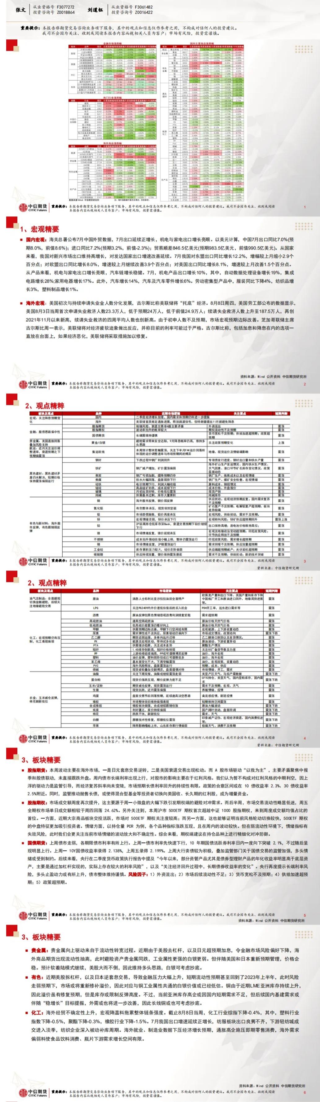 中信期货8月12日晨报:CFTC主要商品多空投机头寸均降,当前或可重新布局“软着陆”多头交易