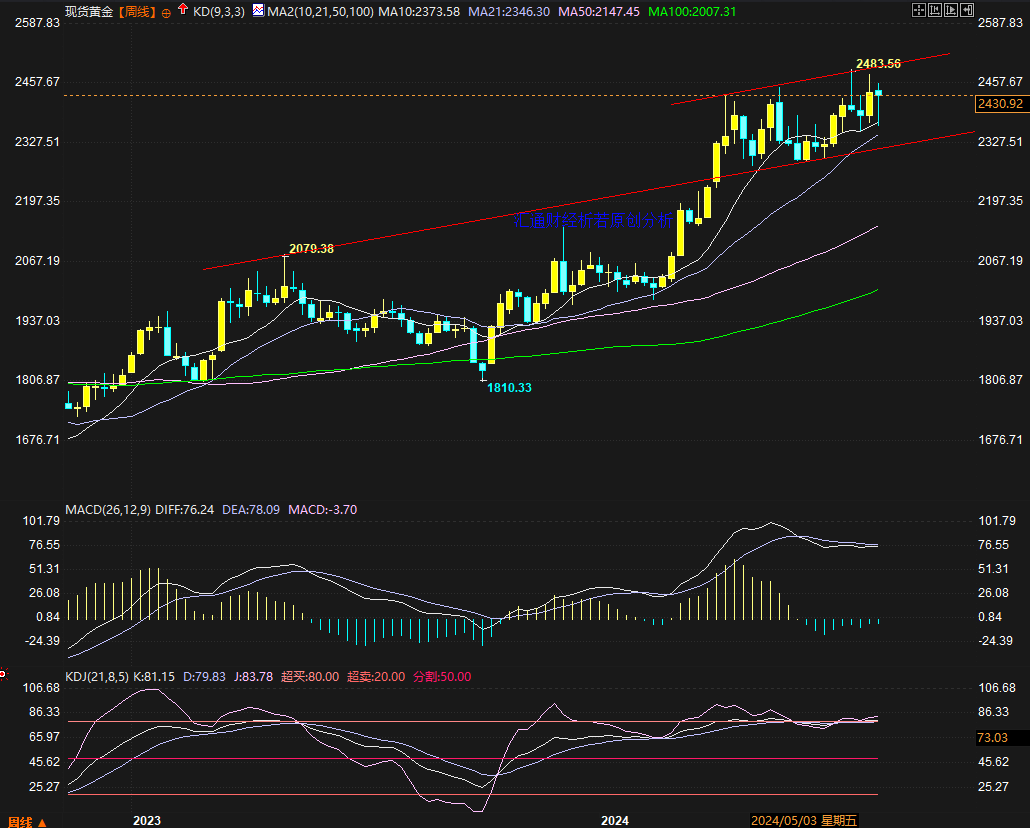 现货黄金周图技术分析,来源:汇通财经旗下易汇通)