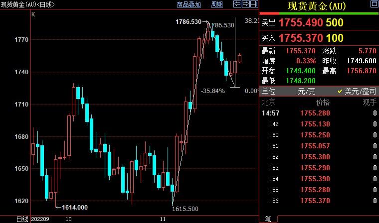 现货黄金上涨0.49%至1757.81美元/盎司;COMEX期金主力合约上涨0.73%至1758.4美元/盎司;
