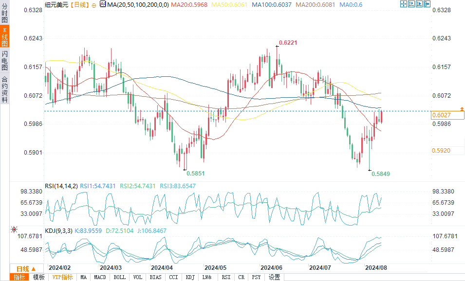 北京时间20:25,纽元/美元报0.6028/30,涨幅0.52%。