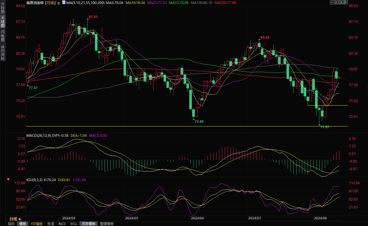 技术面来看,日线级别,虽然油价在100日均线附近受阻后回落,但仍守在200日均线位置上方,MACD金叉良好运行,失守200日均线77.98前,油价仍有震荡走高的机会,一旦顶破100日均线,将打开新的上涨空间。下方进一步支撑参考10日均线76.36附近,若意外回落至该位置下方,则增加后市看空信号。