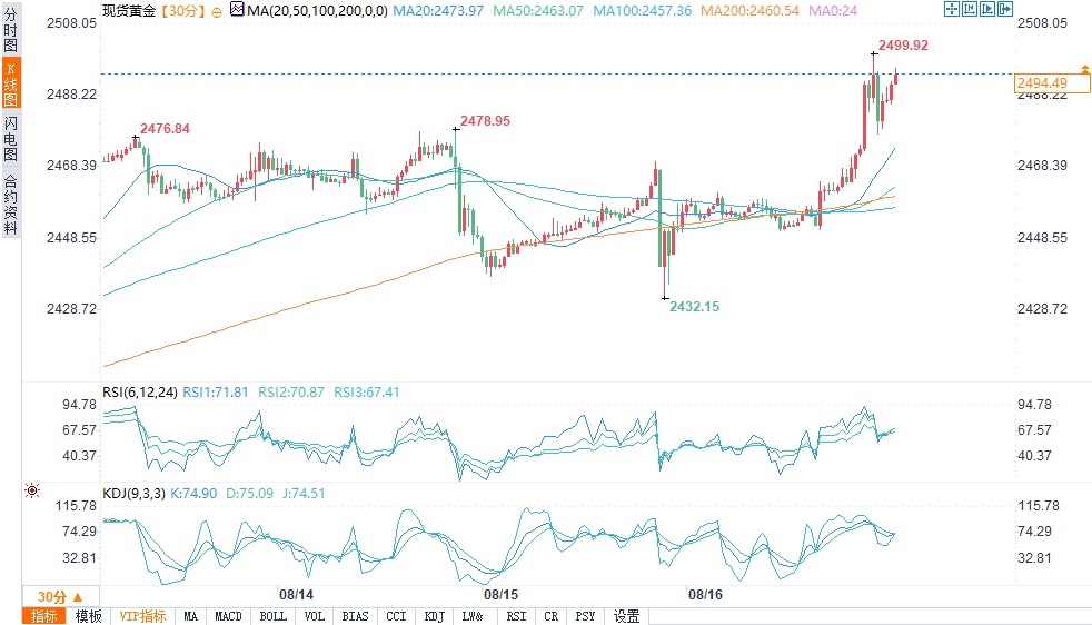 现货黄金报2495.46美元/盎司,涨幅1.59%。