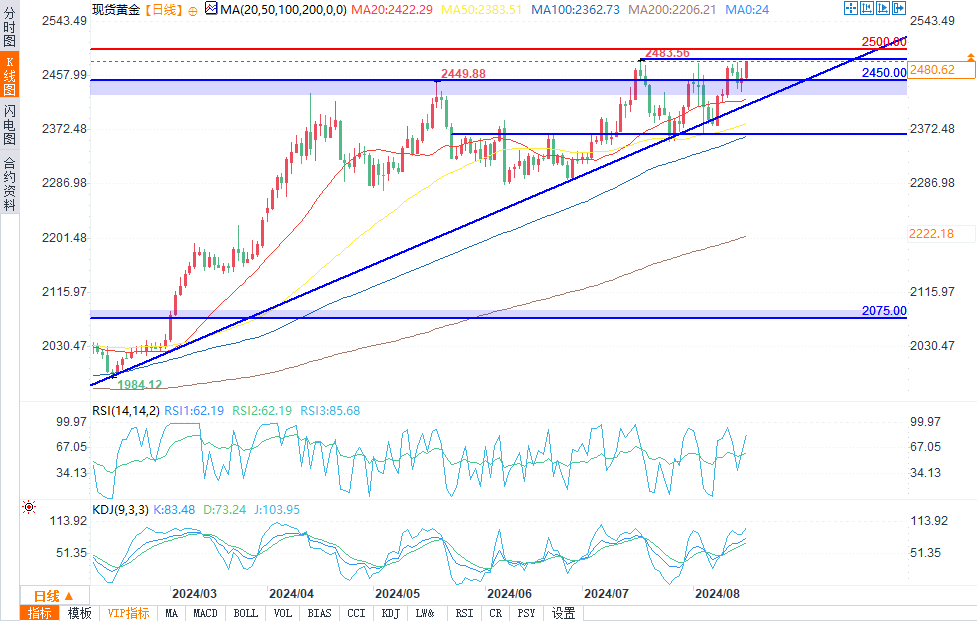 现货黄金报2476.04美元/盎司,涨幅0.80%。