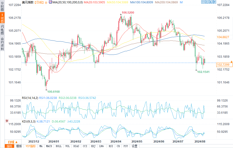 美元指数缓慢下跌,盘中报102.726,跌幅0.31%。