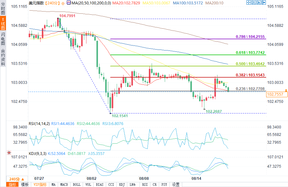 美元指数震荡下跌,盘中报102.7937,跌幅0.25%。