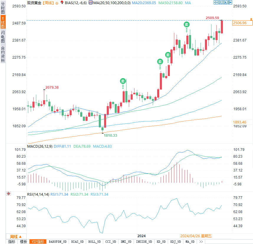 现货黄金大幅上涨2.07%,报收于2507.33美元/盎司,而