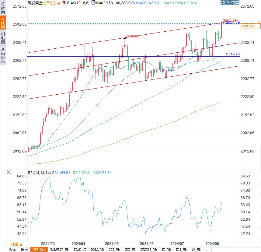 从技术角度来看,黄金的日线图显示,相对强弱指数(RSI)保持在60以上,这表明市场的看涨情绪依然强烈。如果金价能够守住2500美元/盎司的关键支撑位,并成功将其转化为新的支撑位,那么上行通道的上限2600美元/盎司将成为下一个看涨目标。